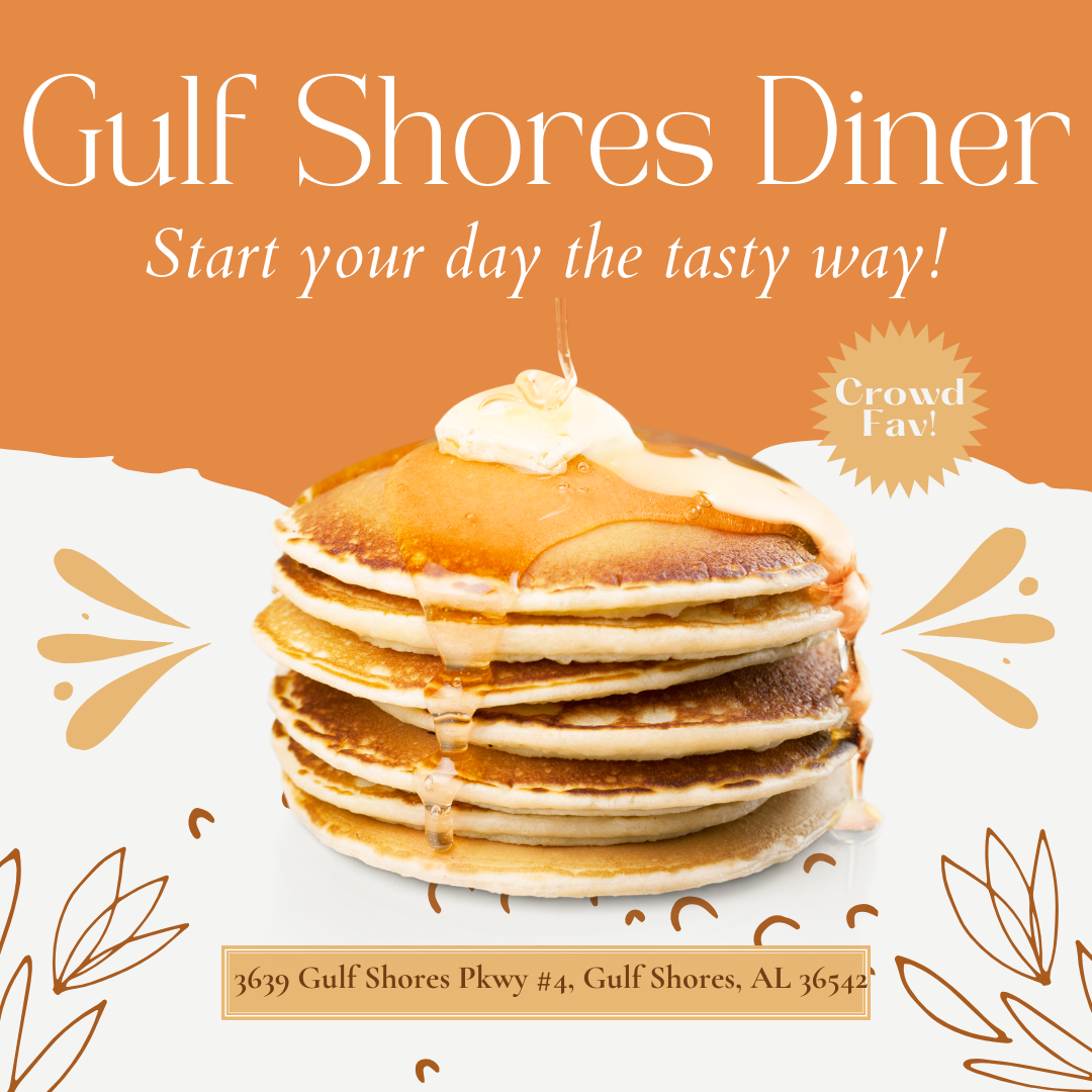 Every time we go to the Gulf Shores Diner, we enjoy ourselves. The food is always perfect and so is the service. Most recently we had the best pancakes we have ever eaten…thick and fluffy. The chicken fried steak was done to perfection, so tender you could cut it with a fork, which is a big deal. And the bacon was crisp to perfection. We will definitely be going again soon.
