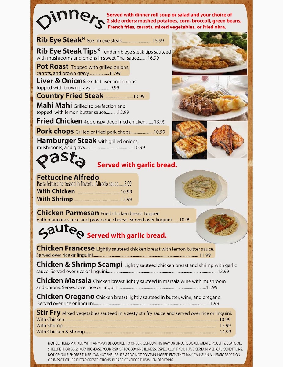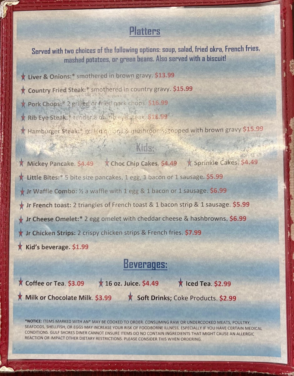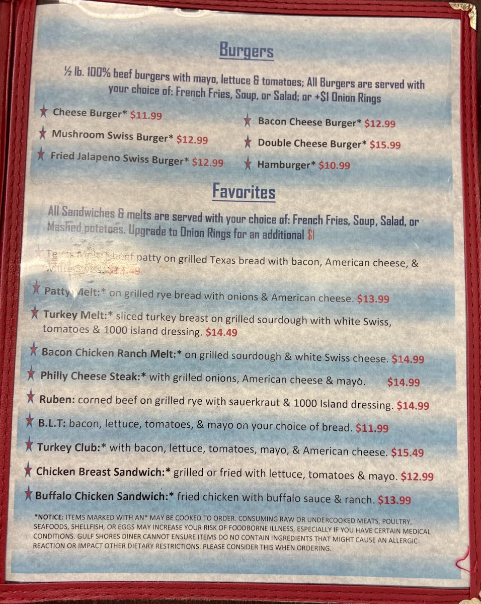 Gulf Shores Diner Menu