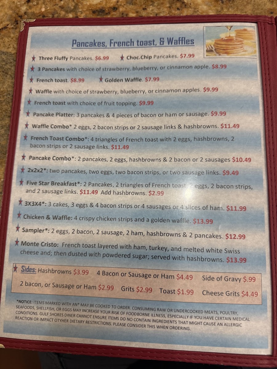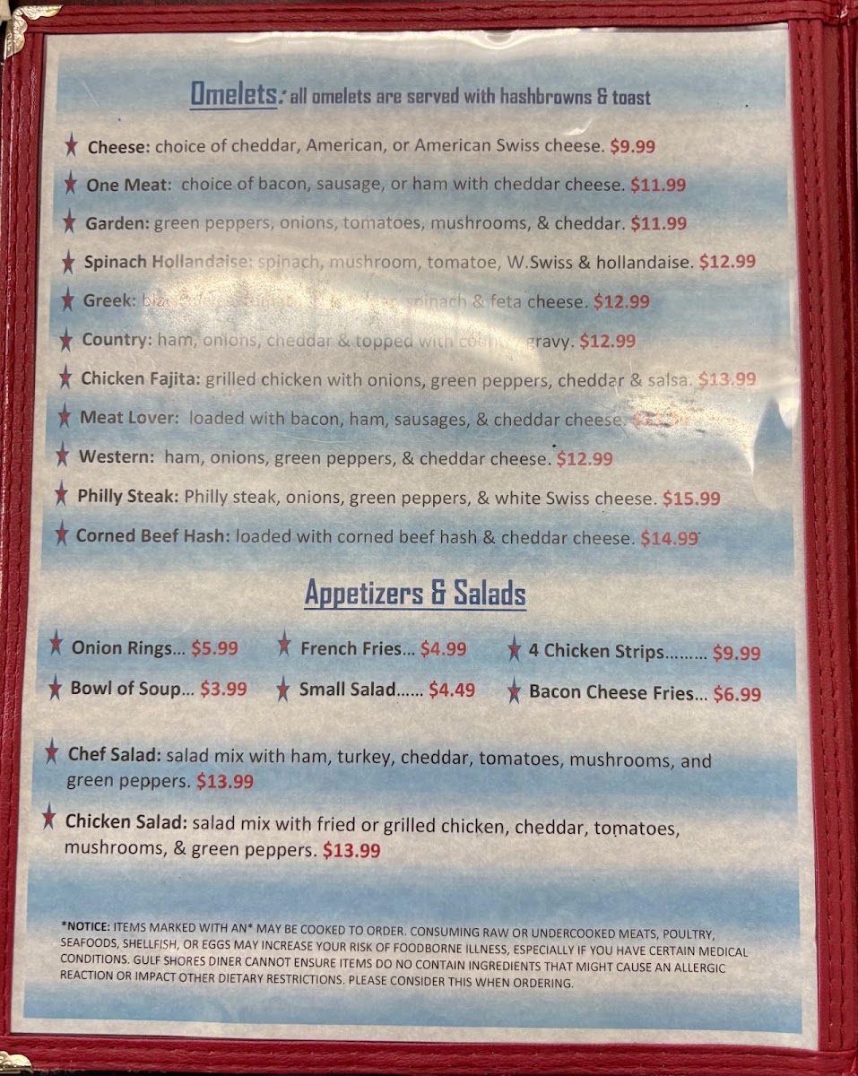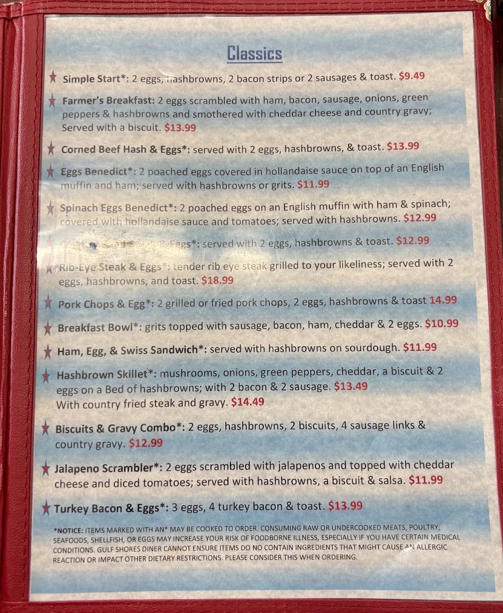 Gulf Shores Diner Menu